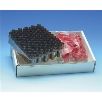 11 mm crimp finish12 x 32 mmWith or without patchColor coded PE capsE-Z Vials and Snap Caps are available assembled together in convenience packs of 100. The amber vials are made of Type 1 borosilicate glass. The Snap Caps are available in five colors: Natural, Red, Blue, Yellow and Green.