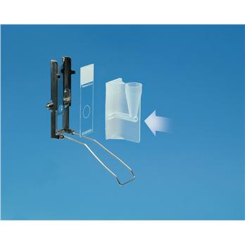 The optically clear acrylic slide has an integrated cover slip with 10 chambers. Each of the chambers is individually sealed to prevent sample cross contamination and each slide may be used for up to ten patient samples simultaneously. The flatness of the slide as well as the uniform distance between the cover slip and the viewing platform provides a single focal plane across all ten chambers.
