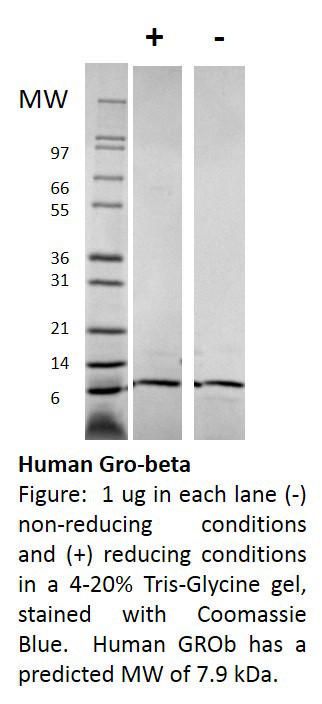 Recombinant, Human, Growth Regulated Protein Beta^ Recombinant, Human, Growth Regulated Protein Beta, Source: &Nbsp;&Nbsp;E. Coli, Purity: &Nbsp;>98%&Nbsp;Asdetermined By Reducing And Non-Reducing Sds-Page, Non-Glycosylated Protein, 73 Amino Acids, 7.9 Kda, Synonyms: Mgsab, Cxcl2, Mip-2A, Gro2, Size: 500Ug
