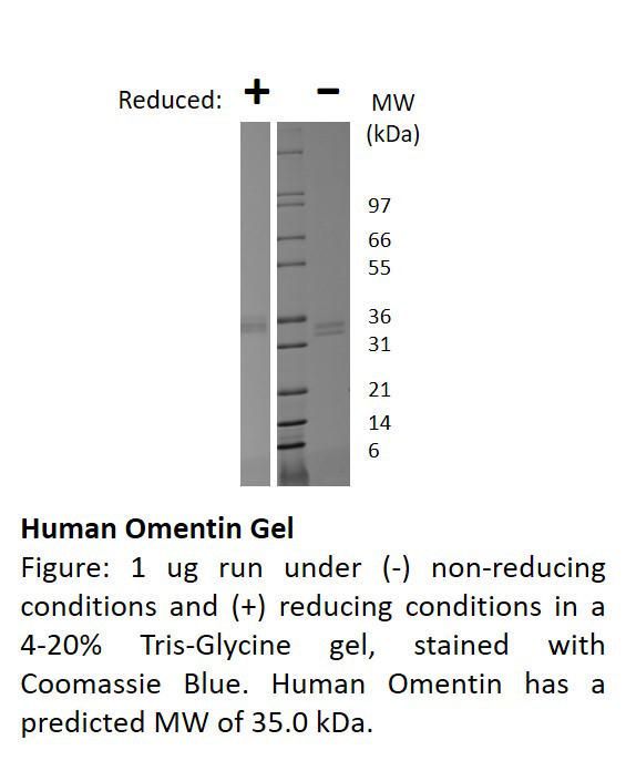 Human Omentin, Non-Glycosylated Recombinant^ Human Omentin, Non-Glycosylated Recombinant Protein, Containing 313 Amino Acids, 35Kda, Source: E. Coli, Purity: >/=95% As Determined By Reducing And Non-Reducing Sds-Page, Endotoxin Level: </= 4 Eu/Ug Protein, Synonymns: Intelectin-1, Itln-1, Size: 500Ug