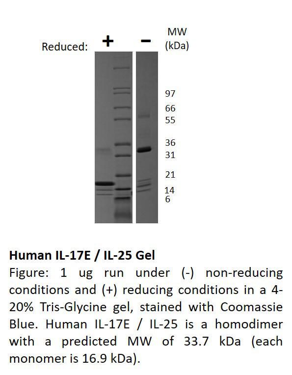 Human Interleukin-17E ((Il-25))^ Human Interleukin-17E ((Il-25)), Non-Glycosylated Recombinant Protein, Two 145 Amino Acid Proteins And Has A 35.5 Kda, Source: E. Coli, Purity: >/=95% (Reducing And Non-Reducing Sds-Page, Uv Spectroscopy At 280 Nm), Synonymns: Il-25, Il 17E, Size: 500Ug