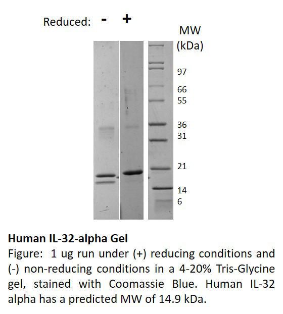 Human Interleukin-32 Alpha (Il-32 Alpha)^ Human Interleukin-32 Alpha (Il-32 Alpha), Non-Glycosylated Recombinant Protein, 131 Amino Acids, With A Molecular Mass Of 14.9 Kda, Source: E. Coli, Purity: >/=97% (Reducing And Non-Reducing Sds-Page, Uv Spectroscopy At 280 Nm), Synonymns: Nk4, Size: 500Ug