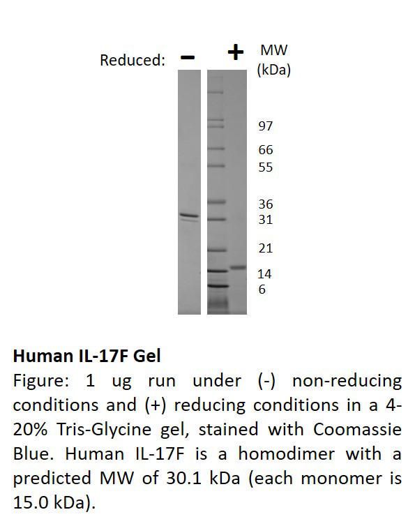 Human Il-17F, Non-Glycosylated Recombinant^ Human Il-17F, Non-Glycosylated Recombinant Protein, Two 134 Aa Subunits, With Total Molecular Weight Of 30 Kda, Source: E. Coli, Purity: >/=97% Reducing And Non-Reducing Sds-Page, Uv Spectroscopy At 280 Nm, Synonymns: Interleukin 17F, Il17A-F, Size: 500Ug