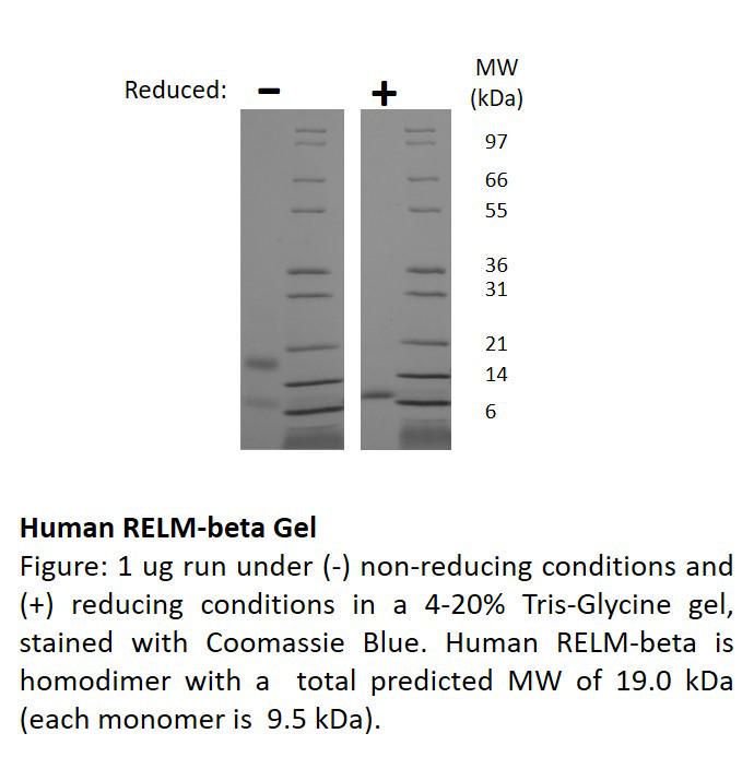 Human Resistin-Like Molecule-Beta, Non-Glycosylated Recombinant^ Human Resistin-Like Molecule-Beta, Non-Glycosylated Recombinant Protein, Contains 89 Amino Acids, With The Dimer Total 19 Kda, Source: E. Coli, Purity: >/=90% Uv Spectroscopy At 280 Nm, Synonymns: Fizz2, Size: 500Ug