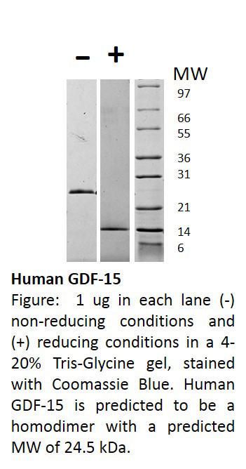 Recombinant, Human, Growth And Differentiation Factor 15^ Recombinant, Human, &Nbsp;Growth And Differentiation Factor 15&Nbsp;, Source: &Nbsp;&Nbsp;E. Coli, Purity: 95% By Reducing & Non-Reducing Sds-Page, Non-Glycosylated, Disulfide Linked&Nbsp;Homodimer, Two 113 Amino Acid, 24. 5&Nbsp;Kda, Synonyms: &Nbsp;&Nbsp;Mic-1, Size: 500Ug