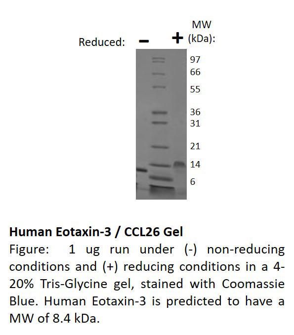 Recombinant, Human, Eotaxin 3 / Ccl26^ Recombinant, Human, Eotaxin 3/Ccl26, Source: &Nbsp;&Nbsp;Escherichia Coli, Purity: 97% As Determined By Reducing & Non-Reducing Sds-Page, At 280 Nm, Non-Glycosylated&Nbsp;Protein, Containing 71 Amino Acids, 8. 4&Nbsp;Kda, Synonyms: &Nbsp;Ccl26, Mip-4 Alpha, &Nbsp;Tsc-1, Size: 500Ug