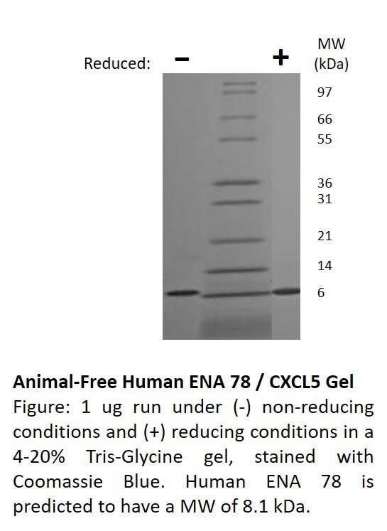 Recombinant, Human, Ena 78 / Cxcl5^ Recombinant, Human, Ena 78/Cxcl5, Source: &Nbsp;&Nbsp;E. Coli, Purity: 95% As Determined By Reducing And Non-Reducing&Nbsp;Sds-Page, Non-Glycosylated Protein, 74 Amino Acids, 8.1 Kda, Synonyms: &Nbsp;&Nbsp;Cxcl5, Epithelial-Derived Neutrophil-Activating Protein 78&Nbsp; &Nbsp;&Nbsp;&Nbsp;, Size: 500Ug