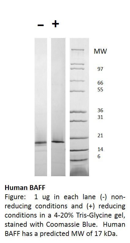 Recombinant, Human, B Cell Activating Factor^ Recombinant, Human, B Cell Activating Factor Baff, Source: &Nbsp;&Nbsp;E.Coli, Purity: 90% As Determined By Reducing & Non-Reducing&Nbsp;Sds-Page, Non-Glycosylated&Nbsp;Protein, A N Terminal His Tag, A Thrombin Cut Site And 153Aas Of The&Nbsp;Tnf-Like&Nbsp;Domain, 17&Nbsp;Kda, Size: 500Ug