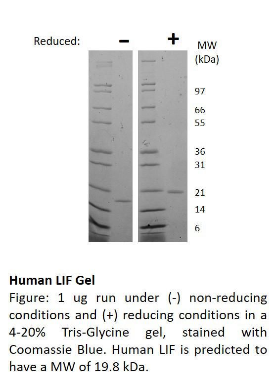 Human Leukemia Inhibitory Factor (Lif)^ Human Leukemia Inhibitory Factor (Lif), Non-Glycosylated Recombinant Protein, 181 Amino Acids, 19.9 Kda, Source: E. Coli, Purity: >/=98% By Reducing And Non-Reducing Sds-Page, Synonymns: Leukocyte Inhibitory Factor, Size: 500Ug