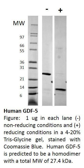 Recombinant, Human, Growth/Differentiation Factor 5^ Recombinant, Human, Growth/Differentiation Factor 5, Source: &Nbsp;&Nbsp;E. Coli, Purity: 98% Hplc, Reducing And Non-Reducing&Nbsp;Sds-Page, Non-Glycosylated&Nbsp;Homodimer, Two 120 Amino Acids Chains, 27. 4&Nbsp;Kda, Synonyms: &Nbsp;&Nbsp;Cdmp-1&Nbsp; &Nbsp; &Nbsp;&Nbsp;&Nbsp;&Nbsp;&Nbsp;&Nbsp;&Nbsp;, Size: 100Ug
