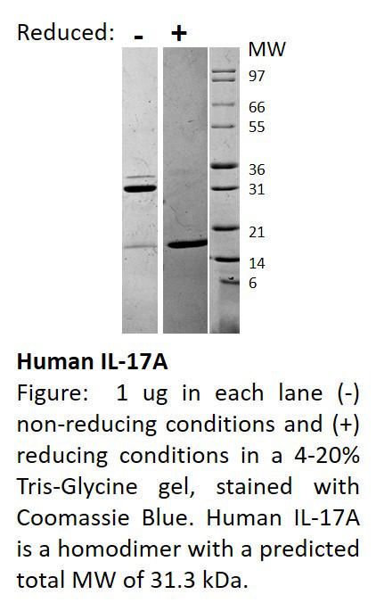 Recombinant, Human, Interleukin-17A^ Recombinant, Human, Interleukin-17A, Source: &Nbsp;&Nbsp;E. Coli, Purity: >/=98% By Reducing And Non-Reducing Sds-Page, Uv Spectroscopy At 280 Nm, Non-Glycosylated, Disulfide-Linked, &Nbsp; Two 137 Amino Acid Proteins, 31&Nbsp;Kda, Synonyms: Il-17, Ctla-8, Size: 500Ug