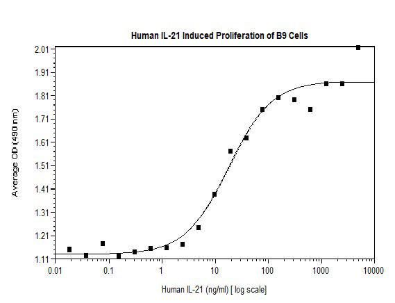 Human Interleukin-21 (Il-21)^ Human Interleukin-21 (Il-21), Animal Free (Af), Non-Glycosylated Recombinant Protein, 133 Amino Acids With Total Molecular Weight Of 15. 5 Kd, Source: E. Coli, Purity: >/=95% (Reducing And Non-Reducing Sds-Page, Uv Spectroscopy At 280 Nm), Size: 500Ug
