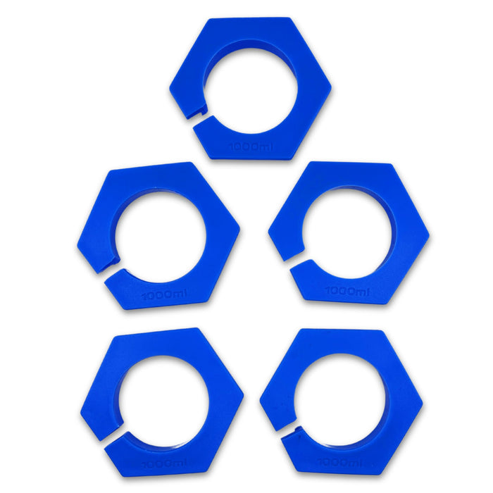 ull; PACK OF 5 CYLINDER PROTECTORS || Includes 5 hexagonal-shaped ABS protectors designed for 1000ml measuring cylinders, providing essential protection in laboratory settings. • HEXAGONAL ABS DESIGN || Sturdy hexagonal ABS shape offers enhanced stability and prevents rolling, ensuring safe usage of measuring cylinders during experiments. • PROTECTS CYLINDERS || Shields graduated cylinders from potential damage, reducing the risk of breakage during handling, storage, and use in lab environments. • VERSATILE LAB APPLICATION || Suitable for use in educational institutions, research labs, and industrial settings to safeguard your measuring equipment. • EASY TO USE || Simple to slip on and off, these protectors are convenient for frequent lab use and storage, maintaining the integrity of your labware. The Eisco Labs Measuring Cylinder Protectors are designed to safeguard your 1000ml graduated cylinders. This pack of 5 hexagonal ABS protectors provides essential protection, preventing damage during handling and use. Ideal for educational, research, and industrial labs, these cylinder guards ensure the longevity of your measuring equipment.