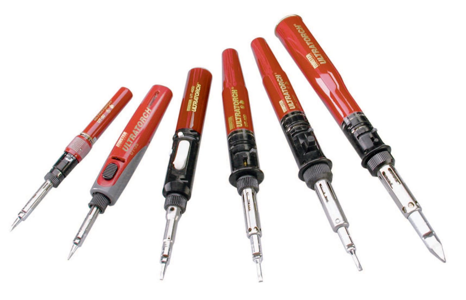 Heat Tool Self-Igniting Economy 840F-1200F^ Heat Tool Self-Igniting Economy, Tip Type: Chisel, Gas Type: Butane, Handle Type: Pencil Grip, Body Material: Plastic, Temperature: 840 Deg F-1200 Deg F, Includes:Solder Tip; Heat Tip; Protective Cap; Iron; Solder, Output Power: 20-80 W, Length: 8 1/4 I