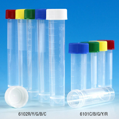 Transport Tube, 10Ml^ With Separate Red Screw Cap, Pp, Conical Bottom, Self-Standing, Molded Graduations