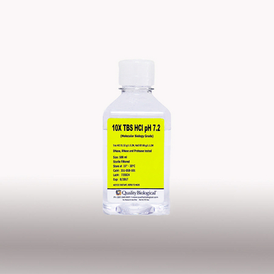 TBS HCL pH 7.2 500ml, DNase, RNase tested. Store at: 15-30 degree C^