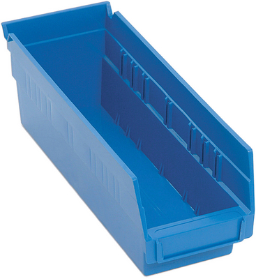 Shelf bin^ Shelf bin high blue, 11 5/8inx 4 1/8inx 4in, polypropylene used to store small and large parts, while sitting on wire or steel shelving. molded-in label holder, built-in rear hanglock which allows bin to tilt out for complete access on shelving