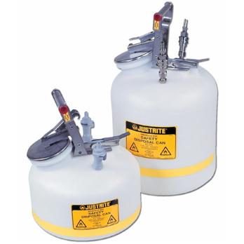 Eliminate vapor release, solvent leakage and spillsQuick disconnect allows fast and easy detachment of can from the HPLC processBuilt-in pressure relief reduces the risk of fireSnap-on two-stage filter minimizes odor and address environmental concernsCollect HPLC waste easily and safely! Excuslive "quick-disconnect " mechanism makes detaching the can from the HPLC process easy and convenient without having to disengage the tubing. Both coupling and disconnect are valved, preventing vapor release and solvent leakage.Durable polyethylene container with large, strategically placed opening facilitates controlled pouring into larger vessels for proper hazardous waste disposal. Opening is equipped with a stainless steel flame arrester which dissipates heat to prevent flashback ignition. Fixed position latch on handle allows lid to stay open for easier pouring. Translucent color lets you check liquid level at a glance. Hands-free liquid waste accumulation is ideal for HPLC applications and is suitable for either pump fed or gravity flow HPLC waste methods. Double fittings eliminate back pressure in liquid flow disposal line and provide controlled handling of vapors. Container automatically vents between 3 and 5 psig. Models with stainless steel fittings offer Teflon o-rings.
