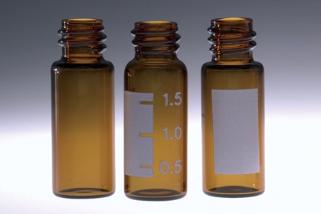 12 x 32mm 2ml Amber Borosilicate Glass Standard Opening Screw Thread Vial with 8-425 neck finish & White Graduation Spot, vial only