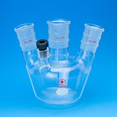 6961 FLASK, European Style^ 125ML EUROPEAN FLASK, 4 NECK, 24/40 CENTER, (2) 14/20, (1) #7 ACE-THRED.