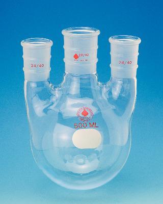 6944 FLASK, Three Necks, Vertical^ 12L 34/45 CENTER, 24/40 SIDES, VERTICAL THREE NECK, HEAVY WALL, ROUND BOTTOM FLASK.