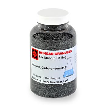 Hard, bluish black, iridescent silicon carbide granule. No reduction characteristics. Oxidizes slowly at 800°C (1472°F). Twelve mesh granule size. Specific gravity 3.20.5 year industry leading warrantyIn any laboratory procedure involving the boiling of a liquid, inert and insoluble, Hengar Granules effectively prevent super-heating with its attendant dangerous explosive vaporization commonly known as "bumping ".A few Hengar Granules in any boiling liquid permit a steady copious stream of bubbles to escape without the spasmodic splatter. Evaporation or distillation proceeds quietly and smoothly. Sharper fractions result. Flask breakage is reduced and watching time is minimized. Froth is spread out evenly and does not climb the neck of the flask. Especially useful in boiling soap solutions and evaporating ethereal extracts of fat. With Hengar Granules in the vessel, any gases formed are extracted from the liquid quickly and completely.Insoluble, Hengar Granules cannot contaminate the liquid. They remain at the bottom of the flask or beaker, permitting the liquid to be readily poured off. After use, the granules are simply discarded. Hengar Granules are also available with a pure selenium coating, for use in the Kjeldahl digestion and distillation method of organic nitrogen determination.