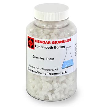 High purity, white, amphoteric alundum granule. Extremely hard porous surface. Will not crumble or "powder ". Four mesh granule size. Specific gravity 3.97.5 year industry leading warrantyIn any laboratory procedure involving the boiling of a liquid, inert and insoluble, Hengar Granules effectively prevent super-heating with its attendant dangerous explosive vaporization commonly known as "bumping ".A few Hengar Granules in any boiling liquid permit a steady copious stream of bubbles to escape without the spasmodic splatter. Evaporation or distillation proceeds quietly and smoothly. Sharper fractions result. Flask breakage is reduced and watching time is minimized. Froth is spread out evenly and does not climb the neck of the flask. Especially useful in boiling soap solutions and evaporating ethereal extracts of fat. With Hengar Granules in the vessel, any gases formed are extracted from the liquid quickly and completely.Insoluble, Hengar Granules cannot contaminate the liquid. They remain at the bottom of the flask or beaker, permitting the liquid to be readily poured off. After use, the granules are simply discarded. Hengar Granules are also available with a pure selenium coating, for use in the Kjeldahl digestion and distillation method of organic nitrogen determination.