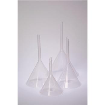 These long stem funnels have smooth walls, 60 degree cone angle, and external ribs to prevent air lock. Molded in Polypropylene, these clear funnels can also be autoclaved.