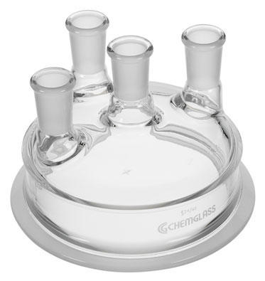 Reaction Vessel Lid, 4-Neck, 24/40 Center Neck, 3-24/40 Side Necks, 150Mm Schott Flange^ 4-Neck Vessel Lid To Fit Chemglass' Cg-1920 Through Cg-1936 Vessels. Lid Has A Flat Ground Surface Allowing It To Be Greased Or Used With An O-Ring