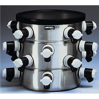 16 Port Drying Chamber (5119D71, 1177K49): Dimensions, H x Dia., inches (cm): 13 x 13 (33 x 33). 16-port drying chamber made of type 304 stainless w/ PTFE-coated interior, arcylic lid w/ neoprene gasket, 16 neoprene valves for 1/2" & 3/4" adapters for flask connection. Includes latching pin. For use w/ FreeZone Freeze Dryers
