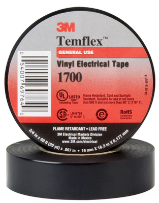 1700 3/4X60Ft Temflex Vinyl Pl^ 3M Electrical 500-69764 1700 3/4Inx60' Temflex Vinyl Plastic Ele