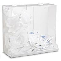 2-Bin Large Apparel Dispenser^ Dispenses and stores protective apparel. Clear front for easy viewing. hinged lid on top for filling. Installs with cut out key holes on back.