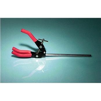 3 pronged extension clamp is 10 " long and has rubber tubing covering the prongsExtention Clamp with cork covered jaws, 8 " total length3 Pronged clamp with aluminum rod, 10 " long