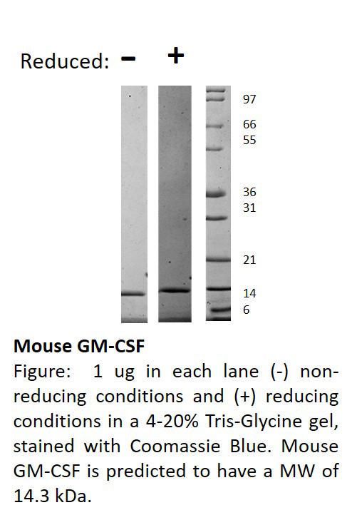 Recombinant, Mouse, Granulocyte Macrophage-Colony Stimulating Factor^ Recombinant, Mouse, Granulocyte Macrophage-Colony Stimulating Factor, Animal Free, Source: &Nbsp;&Nbsp;E. Coli, Purity: 95% (Hplc, Reducing And Non-Reducing&Nbsp;Sds-Page), 125 Aas, 14.3 Kda, Synonyms: Csf-2. Pluripoietin-A, Mgi1Gm, Size: 500Ug