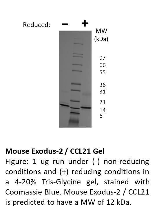Recombinant, Mouse, Exodus-2 / Ccl21^ Recombinant, Mouse, Exodus-2/&Nbsp;Ccl21, Source: &Nbsp;&Nbsp;E. Coli, Purity: Greater Than Or Equal To 98% By&Nbsp; Reducing And Non-Reducing&Nbsp;Sds-Page, Non-Glycosylated&Nbsp;Protein, 110 Amino Acids, 12&Nbsp;Kda. Endotoxin Level: </= 1 Eu/Ug Protein, Synonyms: Ccl21, Size: 500Ug
