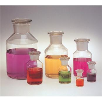 Wide mouth bottlesIdeal for solids and viscous liquidsBottles are designed for easy cleaning in dishwasher or with a brushSpecially designed rim prevents fluids from running down the outside of the bottleWheaton 400 borosilicate glassStandard Taper stopper size indicated in listings.