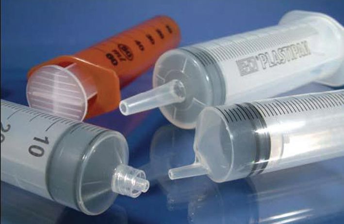 PLASTIPAK* Sterile Syringe with Eccentric Tip^ Packaged in ready-to-use packs. Volume: 20mL.