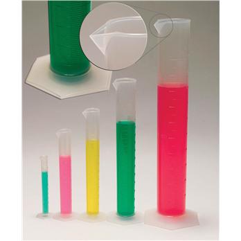 Our polypropylene one-piece measuring cylinders have raised graduations for easy readability. They are autoclavable and have excellent contact clarity. The hexagonal base provides excellent stability to the cylinder, and the tapered spout enables easy pouring of reagents. Stated tolerances are the same as graduated intervals below.