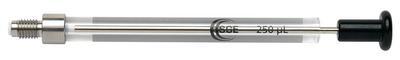 SGE* Syringe, 250 uL^ Fixed Luer Lock termination with fluoropolymer resin insert, Gas tight plunger with 6/32 threaded hole in rear of plunger button. For use on Spark Holland Promist* LC Autosampler