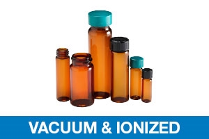 27.75 x 57mm 5 dram (20ml) Amber Borosilicate Glass Vial with 24-400 Green Thermoset F217 & PTFE Lined Cap attached, Vacuum & Ionized,Case of 144