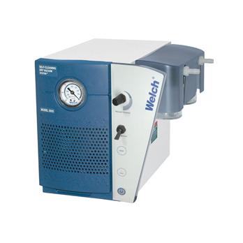 Specifications For use with Concentrators and Rotary EvaporatorsFluorinated plastics used on all wetted partsSolvent resistant at boiling points under 100°CPortableSystem is powered by a 1/8 hp, corrosion-resistant, PTFE pump. All wettable parts, including the diaphragm and valves are PTFE. Vacuum level regulator and built-in dial guage allow easy control of pressure to prevent sample bumping or foaming. Switchable gas ballast inhibits vapor condensation inside pump heads. An inlet separator traps ejected condensed solvent vapors. A self-cleaning purge automatically runs for two minutes at shut-down to expell unwanted residue, extending the diaphragm life. Use with rotary evaporators up to 5 L capacity. A cold trap, such as Welch 1420H-14 (7893R90) is recommended when using this pump with centrifugal concentrators. Also recommended for use with vacuum ovens up to 28 L capacity.Thomas No.WELCH No.Free Air DisplacementULTIMATE PressureTakes Tubing (i.d.)Power7893Q0520250134 lpm (1.2 cfm)10 torr1/4 "115V1233K7320250334 lpm (1.2 cfm)9 torr1/4 "230V1234X1320270132 lpm (1.1 cfm)2 torr3/8 "115V1233K742027C0332 lpm (1.1 cfm)2 torr3/8 "230V