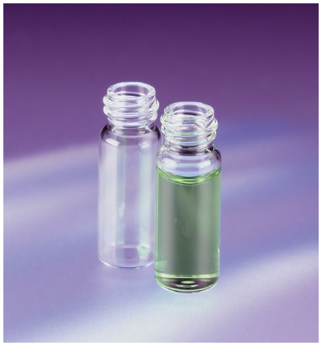 Fisherbrand™ 10 mm screw thread vials feature a wide neck opening which allows for easy filling. Available with marking spot and graduation marks for convenient sample identification.
