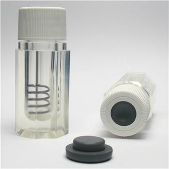 After the ampoule is cracked open, store the ampoule and it's contents in the 2mL Storage Vial Holder. The ampoule sits on the spring inside the vial. Seal the vial and ampoule with a stopper and closure.