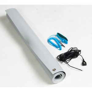 Gray ESD General Purpose Mat Kits are made of a single layer homogenous polymer mix and are considered to be made of a light texture single layer vinyl material. They are designed to provide a static safe work surface for static sensitive products. They are low cost, durable, easy to cut and are reversible. Surface resistivity is 109 – 1010 ohms. Meets ASTM D412, D1004, D2240-75 and ESD S4.1-1997 standards. Service temperature is -20 degrees F to 160 degrees F. Our ESD mat kit includes a common ground cord (CGC151M) and a wrist strap (WSADJSS). These general purpose mats are also available in blue color.