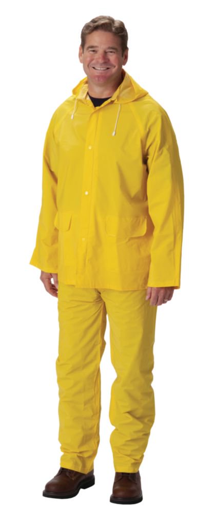 3-Piece Rainsuit^ Pvc/Polyester. 35Mm Thick, Jacket With Detachabl Hood, Corduroy Collar, Bib Overall yellow x 2