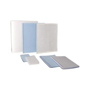 Each notebook contains 50 sheets (100 pages)College ruled or gridBlue or clear polyethylene covers with poly spirals for spinesProcessed, constructed and packaged in a cleanroom environment