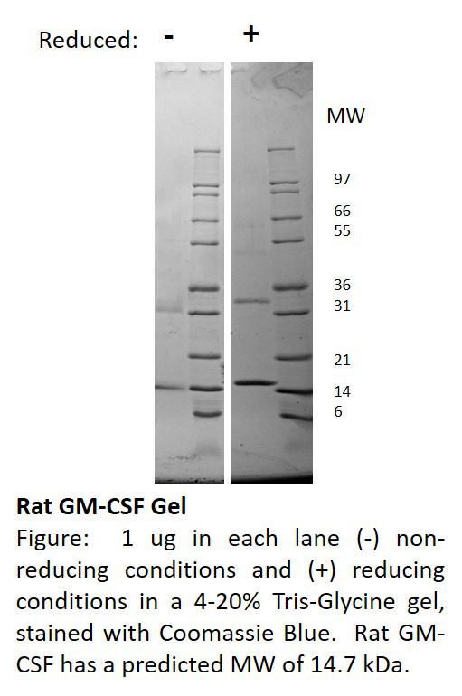 Recombinant, Rat, Granulocyte Macrophage-Colony Stimulating Factor^ Recombinant, Rat, Granulocyte&Nbsp;Macrophage-Colony Stimulating Factor, Source: &Nbsp;&Nbsp;E. Coli, Purity: >/=97% Reducing & Non-Reducing&Nbsp;Sds-Page, Non-Glycosylatedprotein, 128 Amino Acid, 14. 6&Nbsp;Kda, Synonyms: Csf-2, &Nbsp;Mgi1Gm, Size: 500Ug
