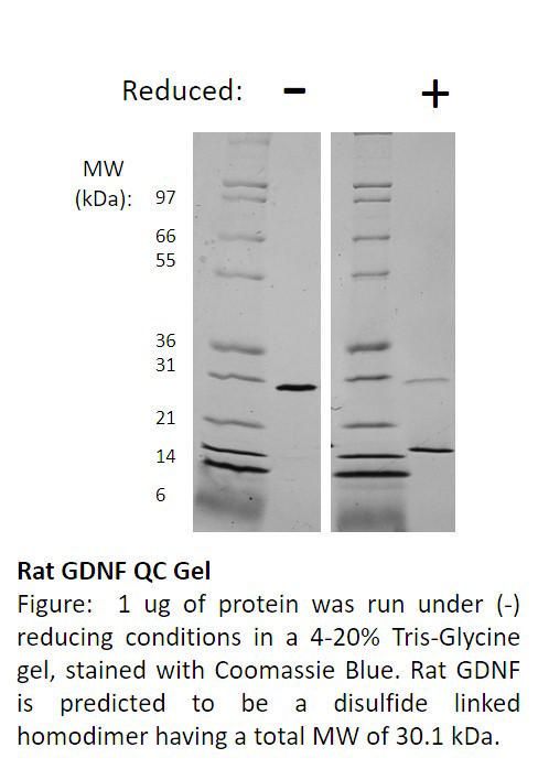 Recombinant, Rat, Glial Derived Neurotrophic Factor, Animal Free^ Recombinant, Rat, Glial Derived Neurotrophic Factor, Animal Free, Source: &Nbsp;&Nbsp;E.Coli, Purity: 98% By Reducing And Non-Reducing&Nbsp;Sds-Page, Non-Glycosylated&Nbsp;Homodimer, Two 135 Amino Acid Chains, 30. 1&Nbsp;Kda, Synonym: Atf-1, Size: 500Ug