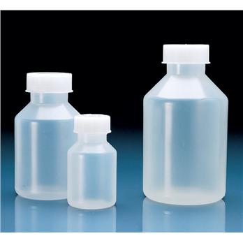 Polypropylene Wide-Mouth Reagent Bottles with Screw CapsRugged, slope-shouldered bottles are made of polypropylene with polypropylene screw caps. They provide excellent chemical resistance to alcohols, aldehydes, aliphatic hydrocarbons, bases and many acids. Wide-mouth design facilitates poured transfer into the bottles. Linerless caps have an internal sealing ring.