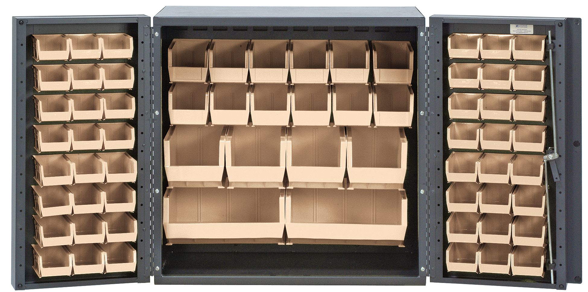 Bin Cabinet All-Welded With Ivory Bin 36In^ Bin Cabinet All-Welded, With Ivory Bin, Made From 14In Gauge Steel For Added Strength, Provides Security For Stored Contents With Three Point Locking Door And Keys, With Gray Baked Enamel Finish, Preassembled, No. Bins: 66, Outer Dimension: 36 X 24 X 36I